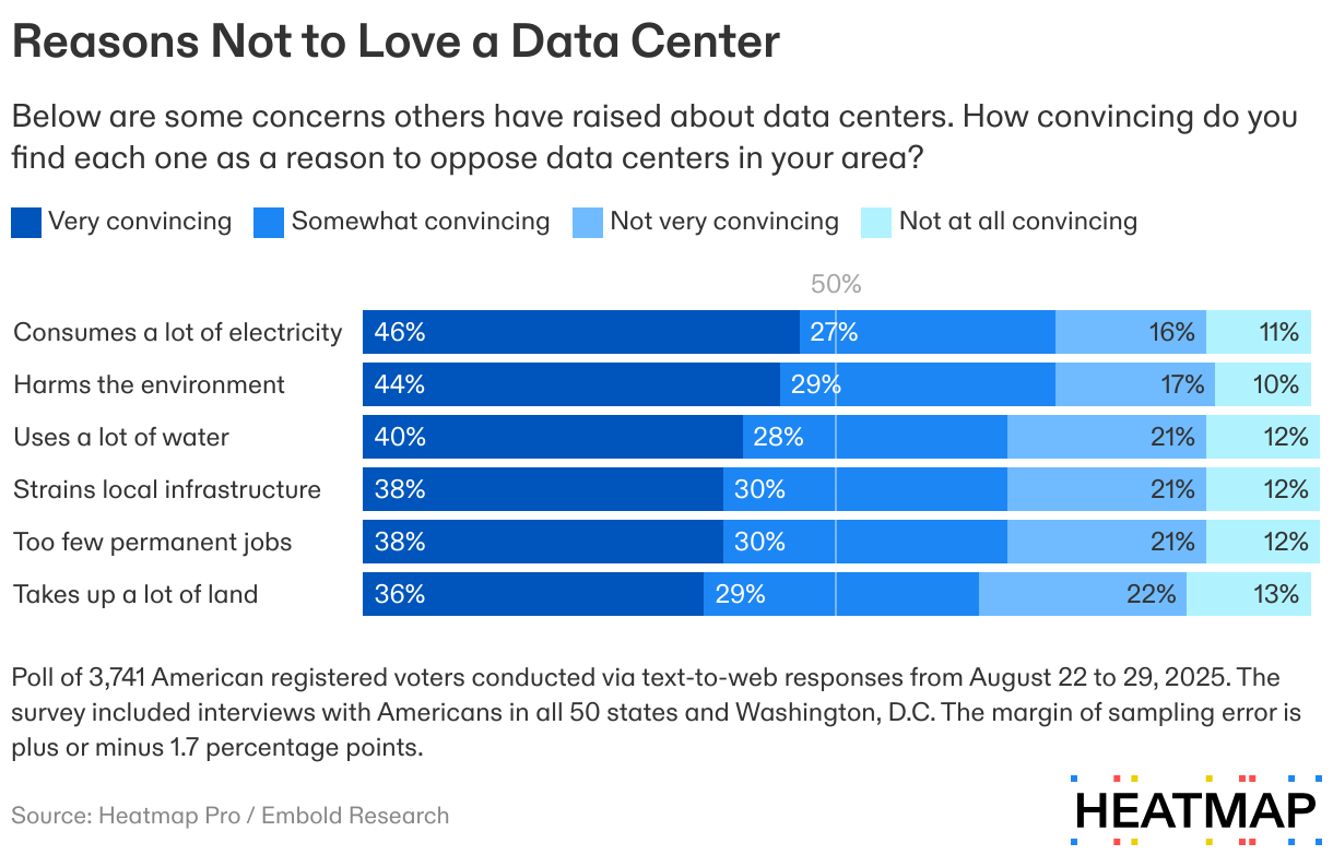 Below are some concerns others have raised about data centers. How convincing do you find each one as a reason to oppose data centers in your area?