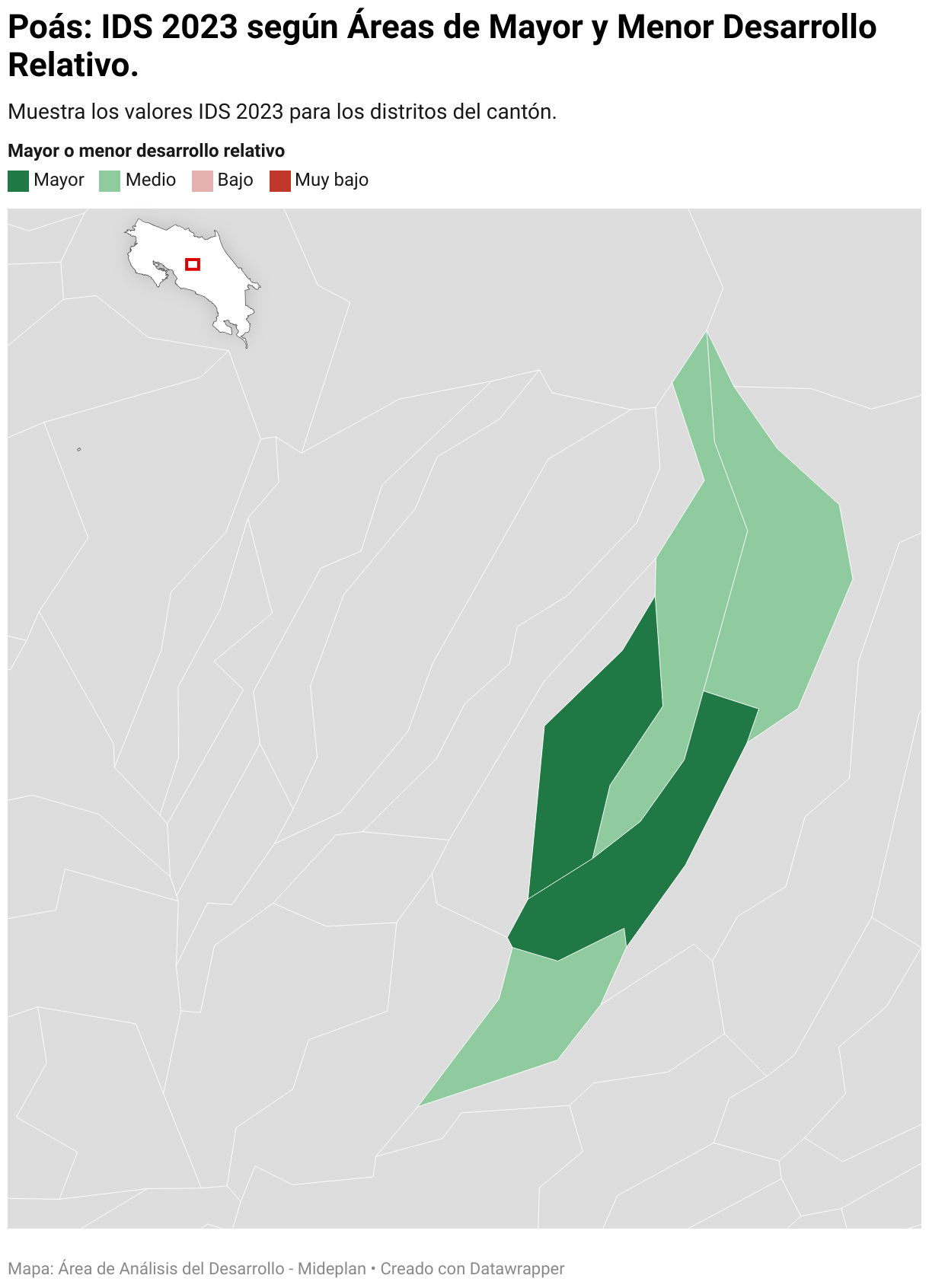 Poás: IDS 2023 según Áreas de Mayor y Menor Desarrollo Relativo.