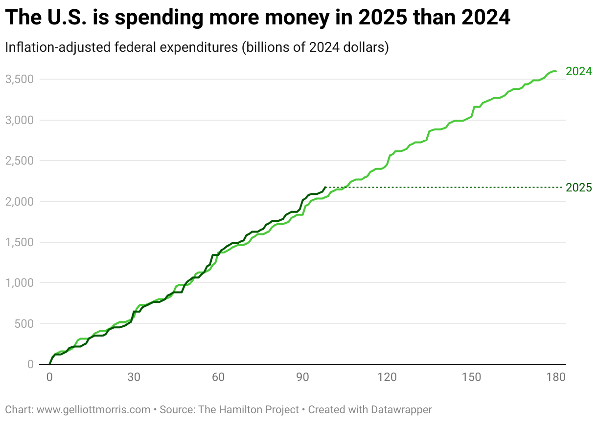 Inflation-adjusted federal expenditures (billions of 2024 dollars)