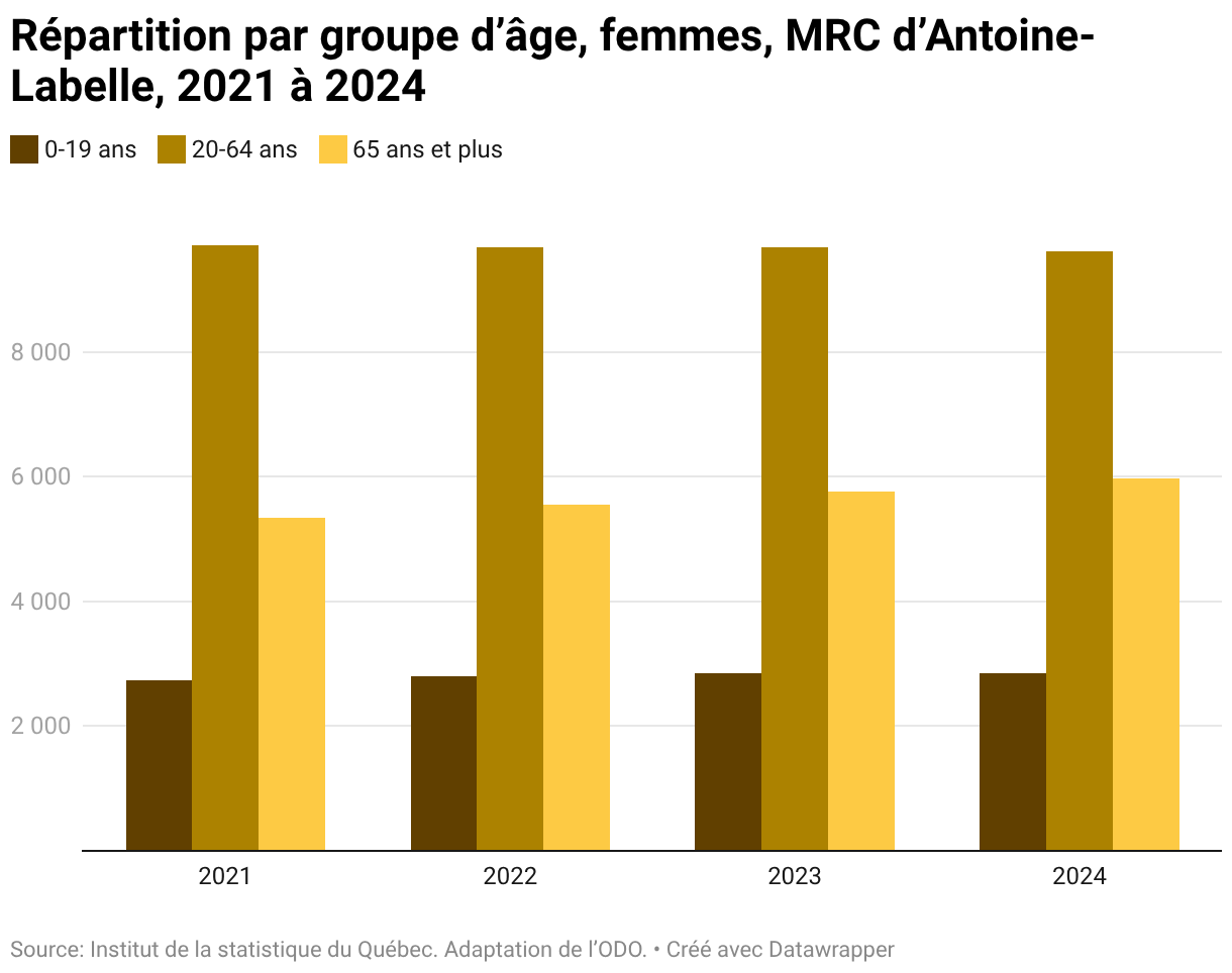 Répartition par groupe d’âge, femmes, MRC d’Antoine-Labelle, 2021 à 2024