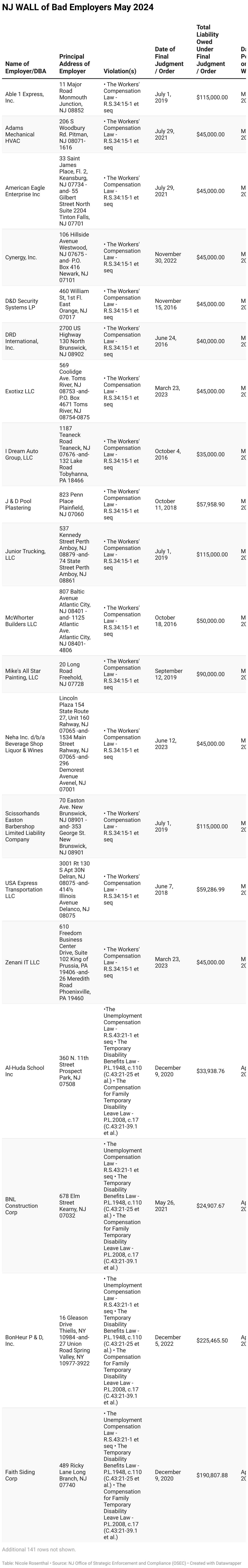 NJ WALL of Bad Employers May 2024