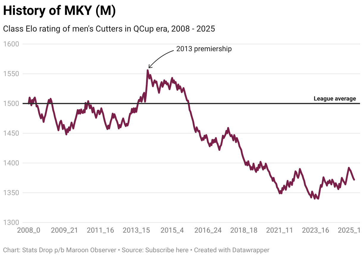 Class Elo rating of men's Cutters in QCup era, 2008 - 2025