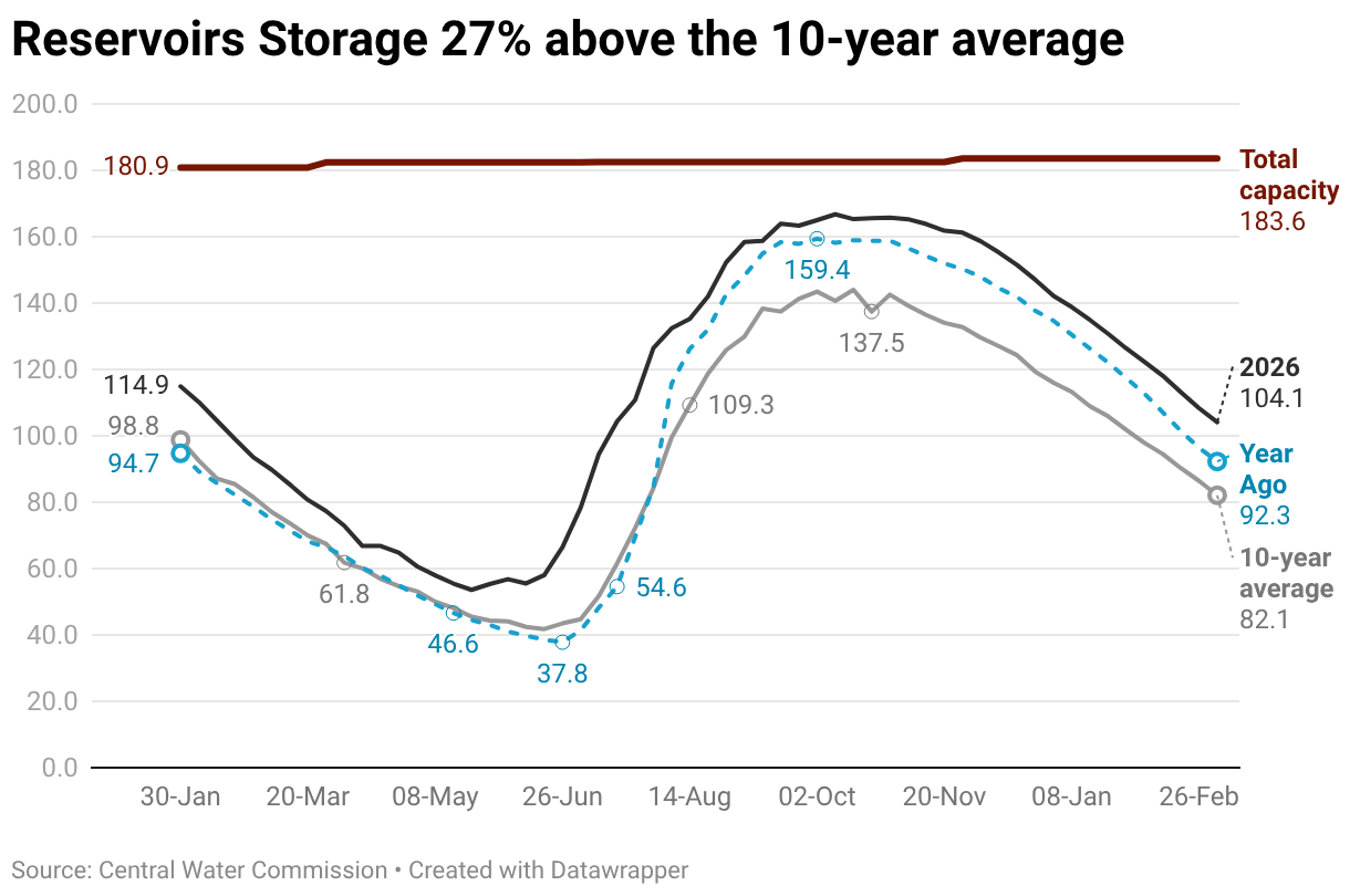 Reservoirs Storage 27% above the 10-year average