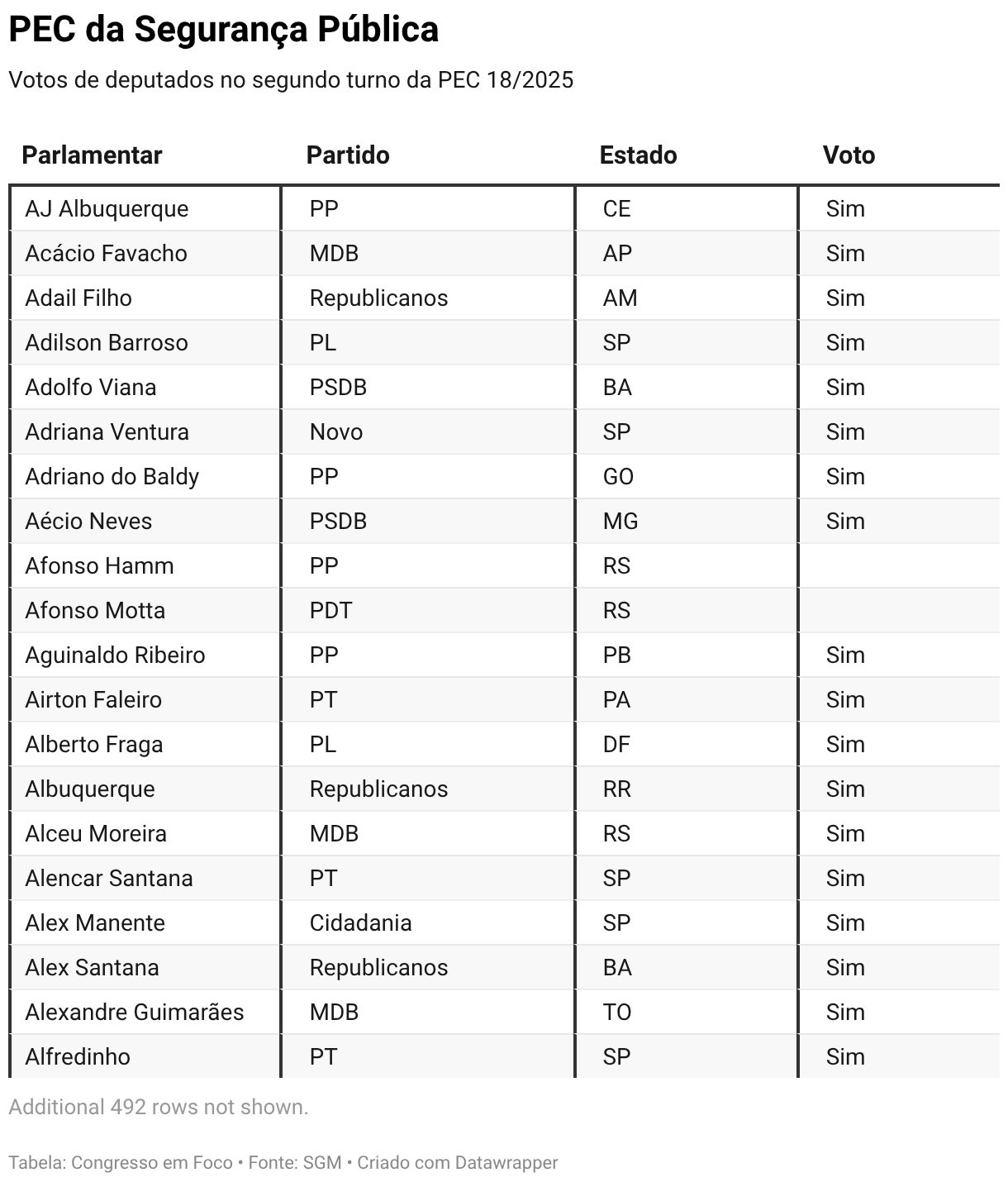 Votos de deputados no segundo turno da PEC 18/2025