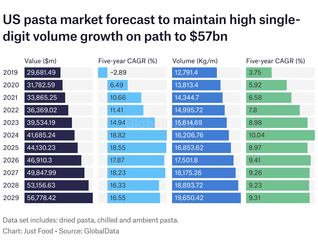 US pasta market forecast to maintain high single-digit volume growth on path to $57bn
