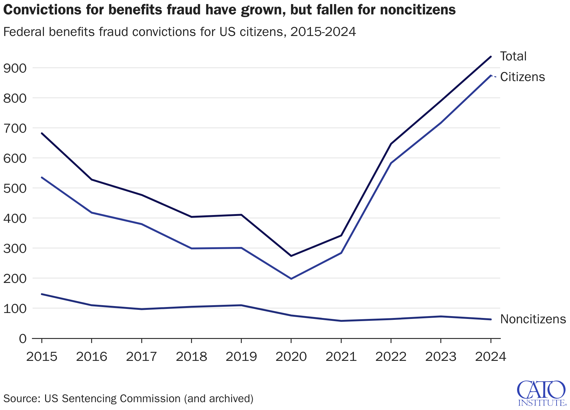 Federal benefits fraud convictions for US citizens, 2015-2024