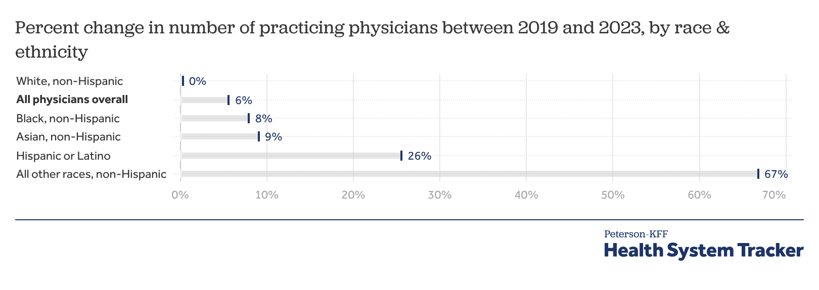 Percent change in number of practicing physicians between 2019 and 2023, by race & ethnicity