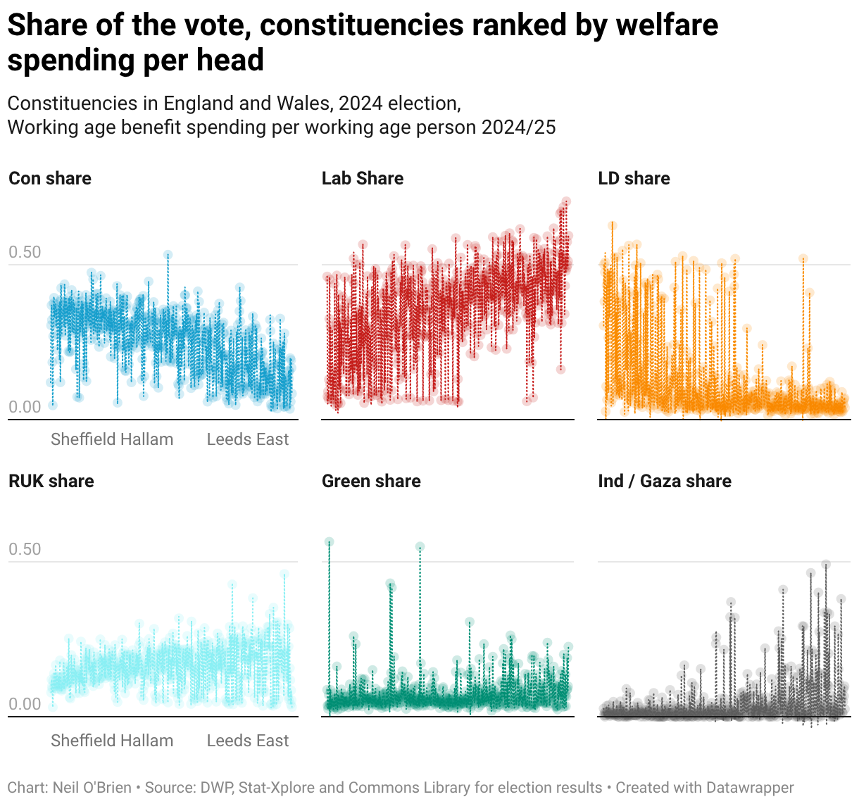 Constituencies in England and Wales, 2024 election,Working age benefit spending per working age person 2024/25