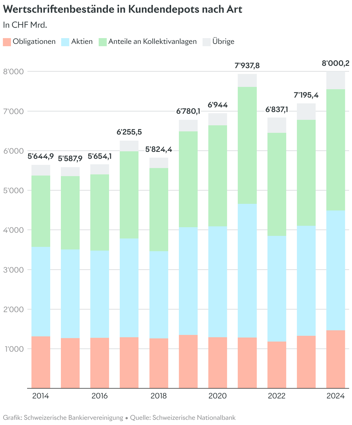 Wertschriftenbestände in Kundendepots nach Art