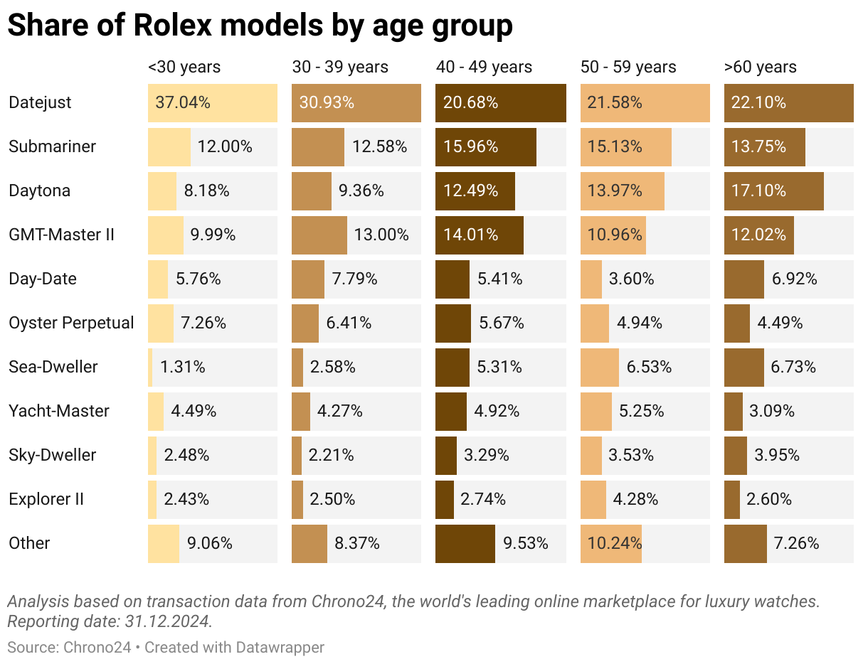 Share of Rolex models by age group