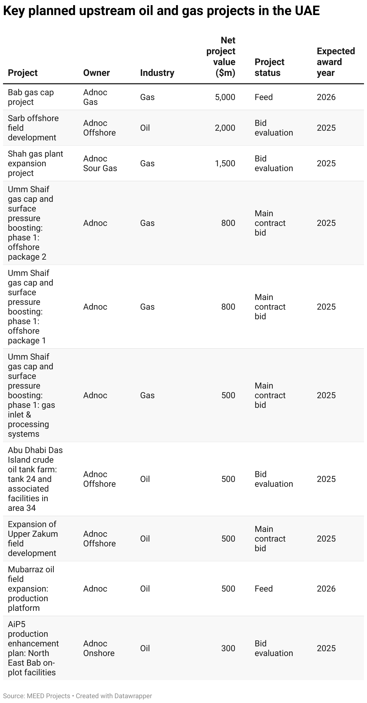 Key planned upstream oil and gas projects in the UAE