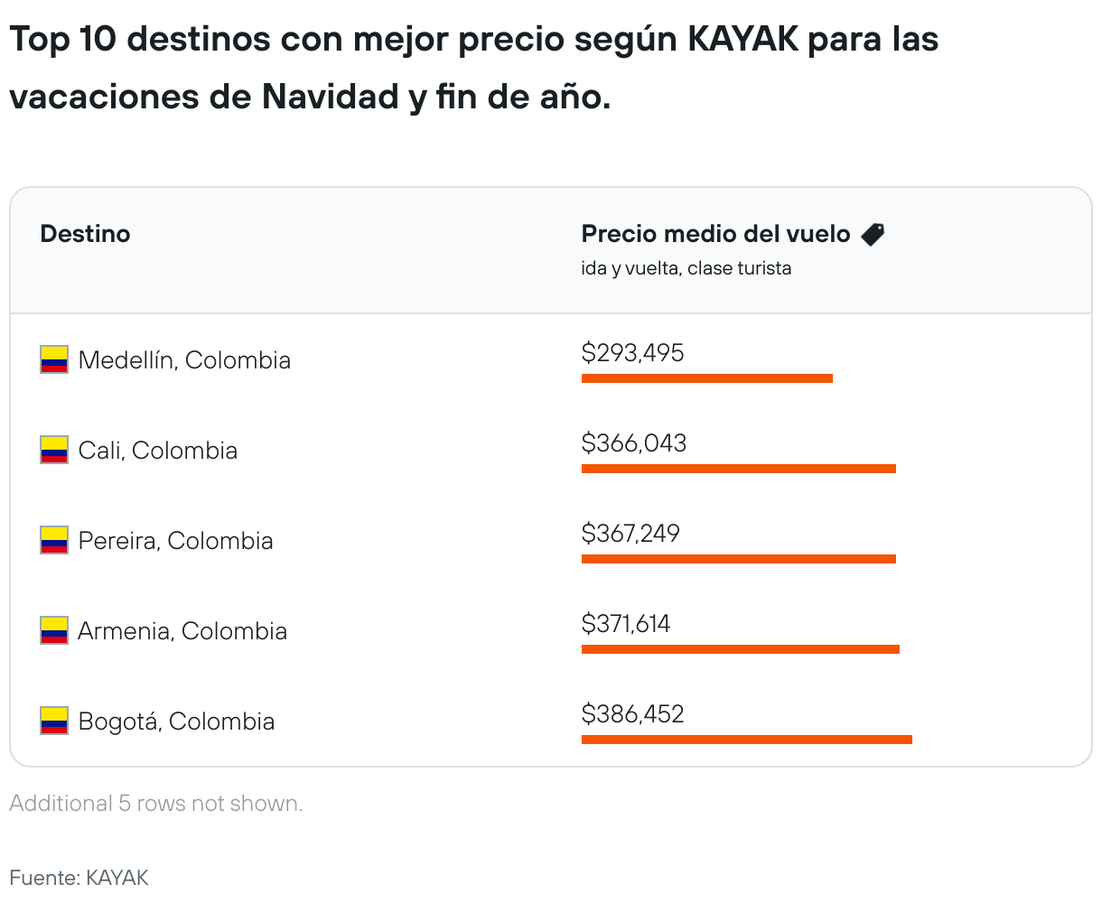 Top 10 destinos con mejor precio según KAYAK para las vacaciones de Navidad y fin de año.