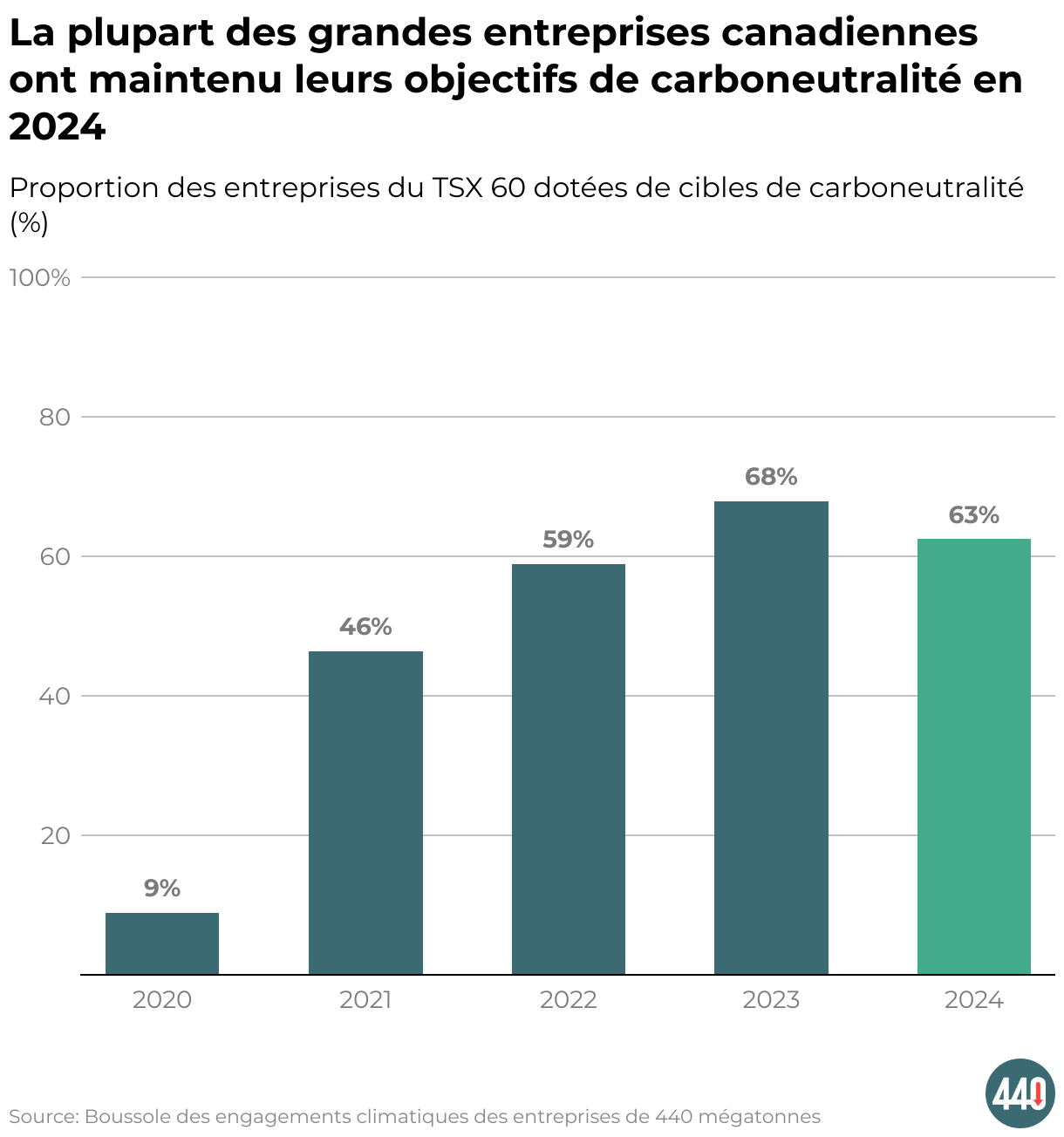 Proportion des entreprises du TSX 60 dotées de cibles de carboneutralité (%)