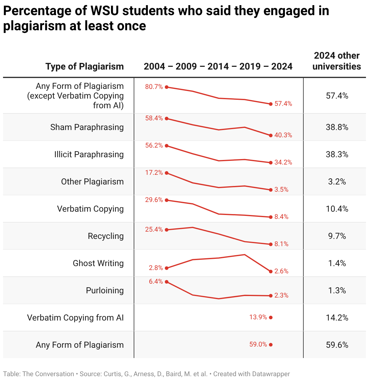 Percentage of WSU students who said they engaged in plagiarism at least once