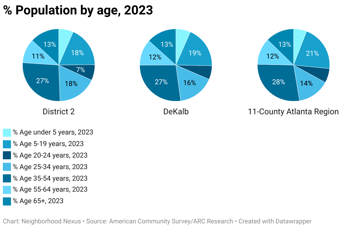 % Population by age, 2023