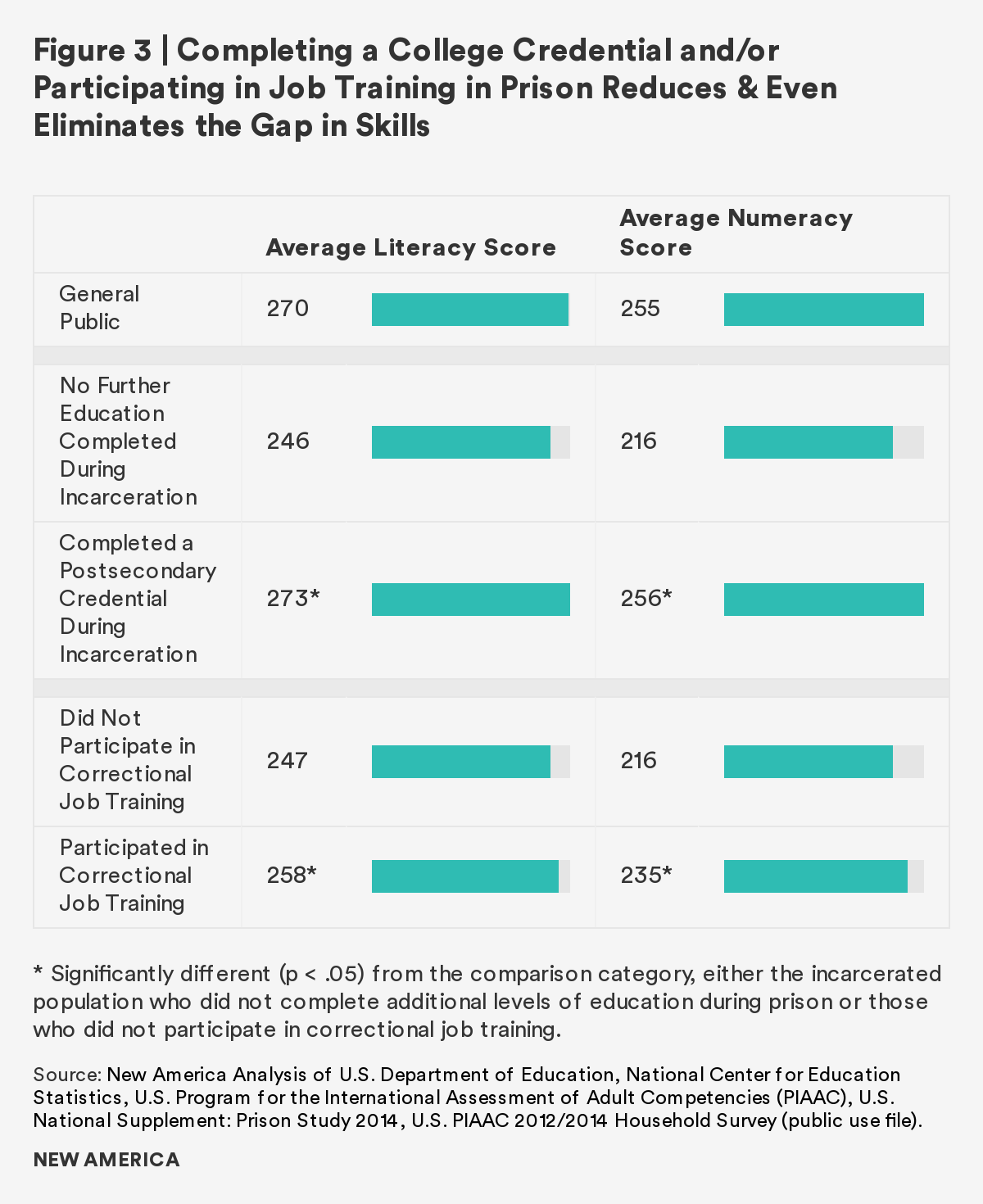 Figure 3 | Completing a College Credential and/or Participating in Job Training in Prison Reduces & Even Eliminates the Gap in Skills