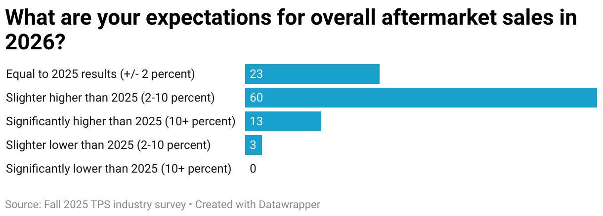 How aftermarket responders project the independent aftermarket to perform in 2026 in a November 2025 TPS reader survey.