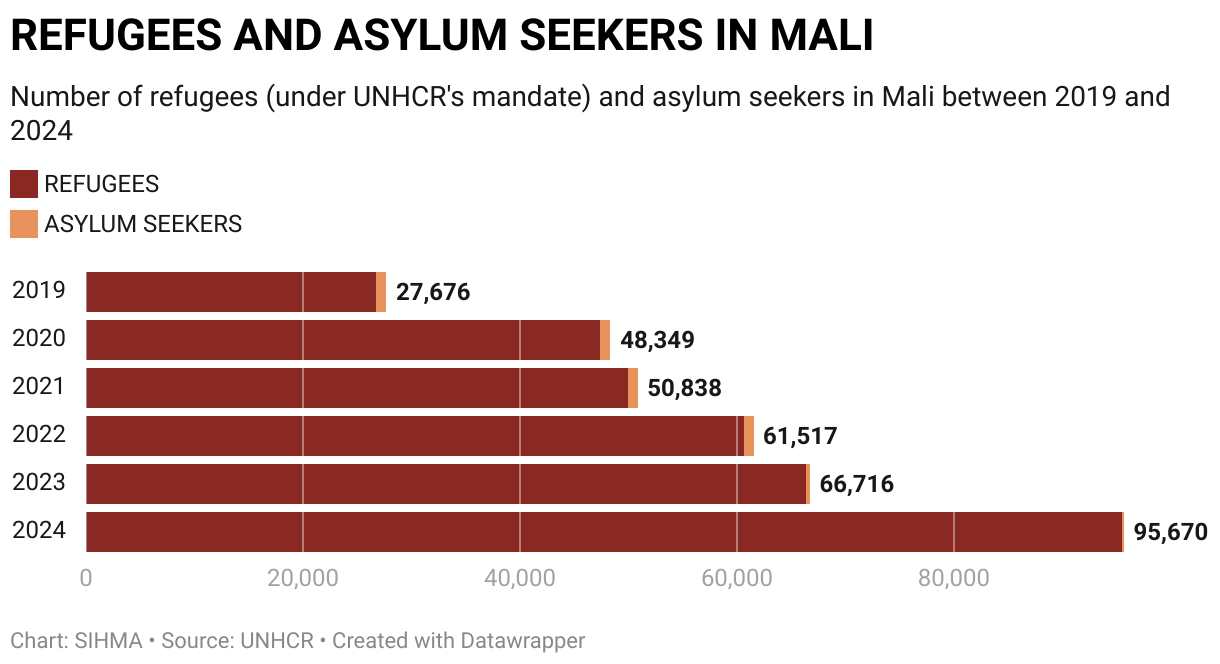 Number of refugees (under UNHCR's mandate) and asylum seekers in Mali between 2019 and 2024