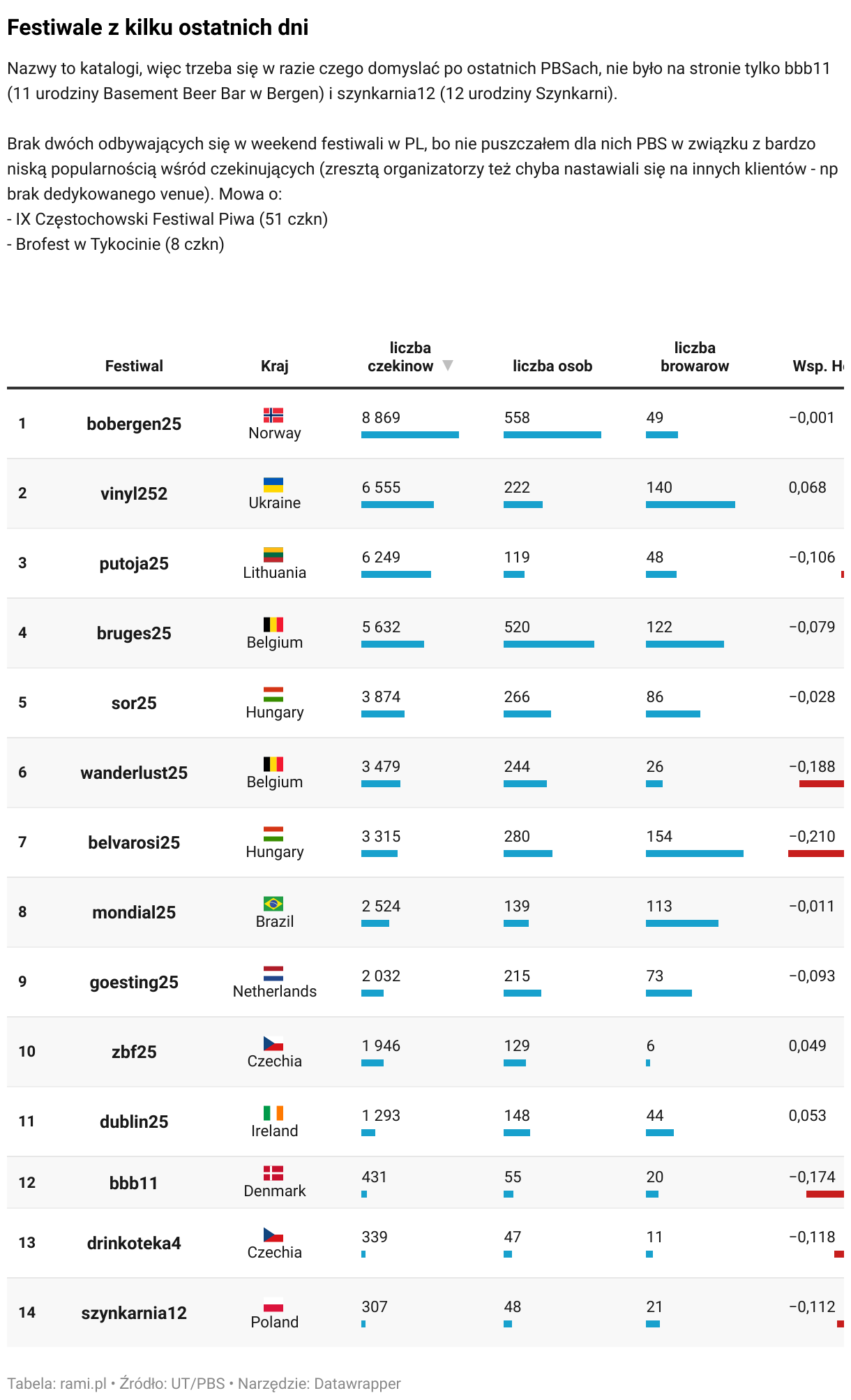 Brak dwóch odbywających się w weekend festiwali w PL, bo nie puszczałem dla nich PBS w związku z bardzo niską popularnością wśród czekinujących (zresztą organizatorzy też chyba nastawiali się na innych klientów - np brak dedykowanego venue). Mowa o: