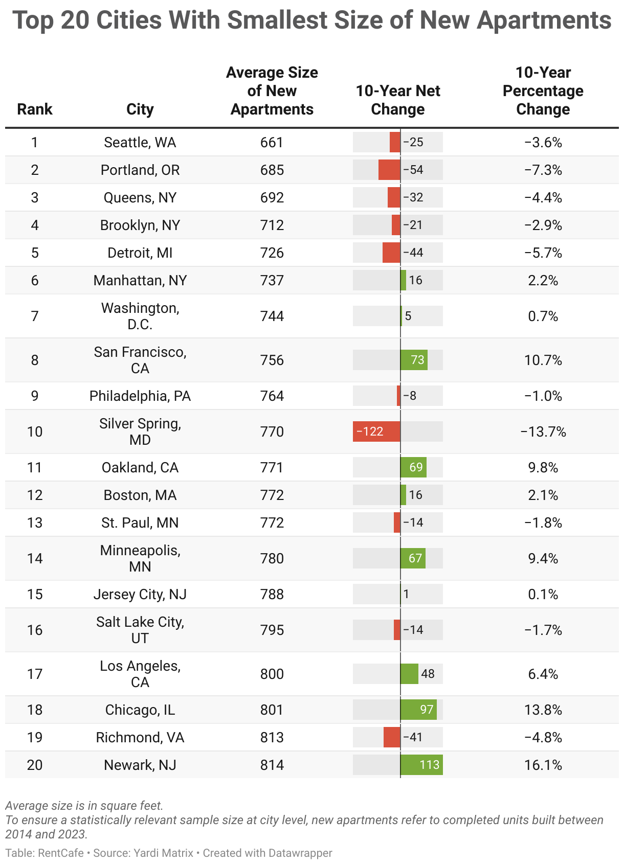 Top 20 Cities With Smallest Size of New Apartments