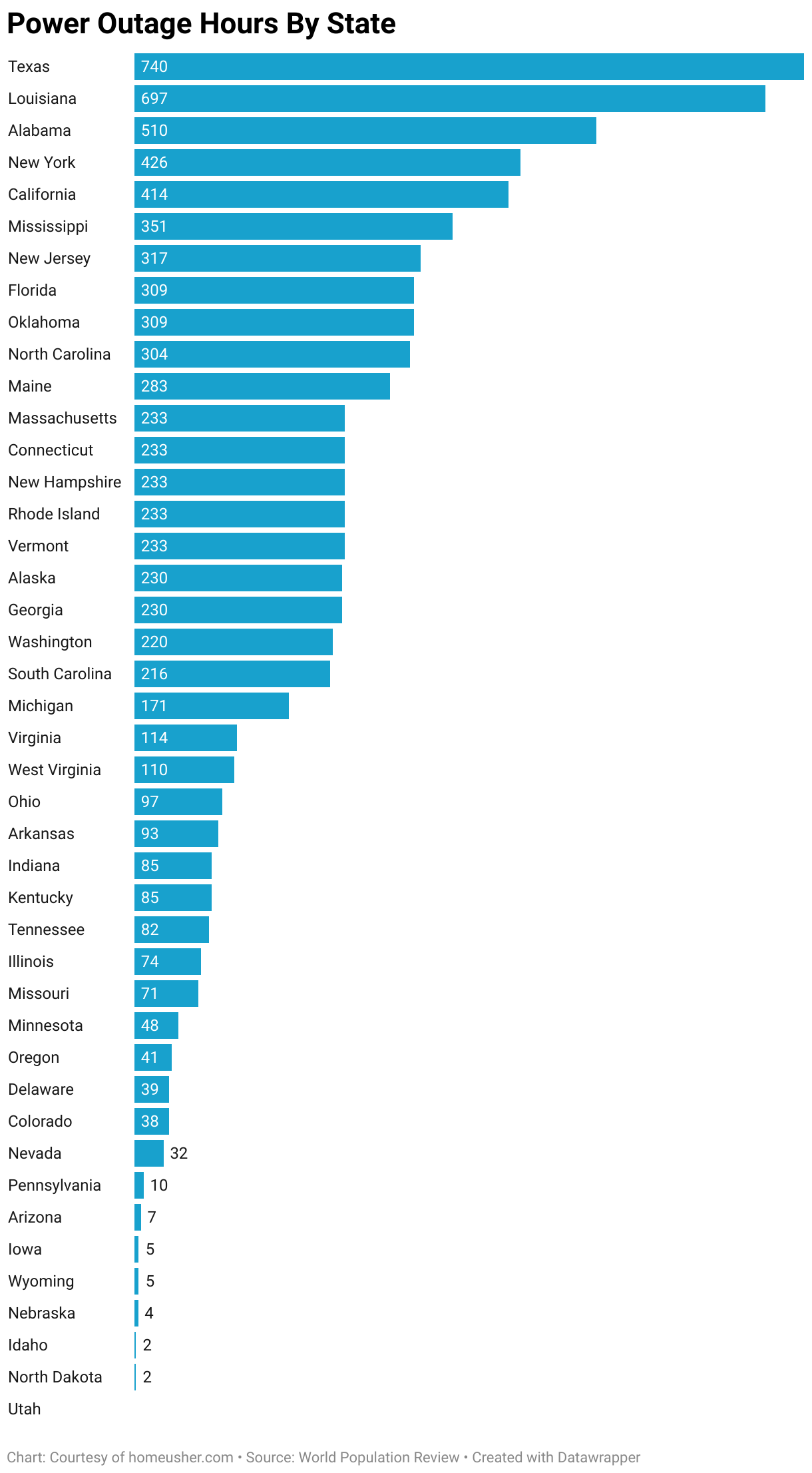 Power Outage Hours By State