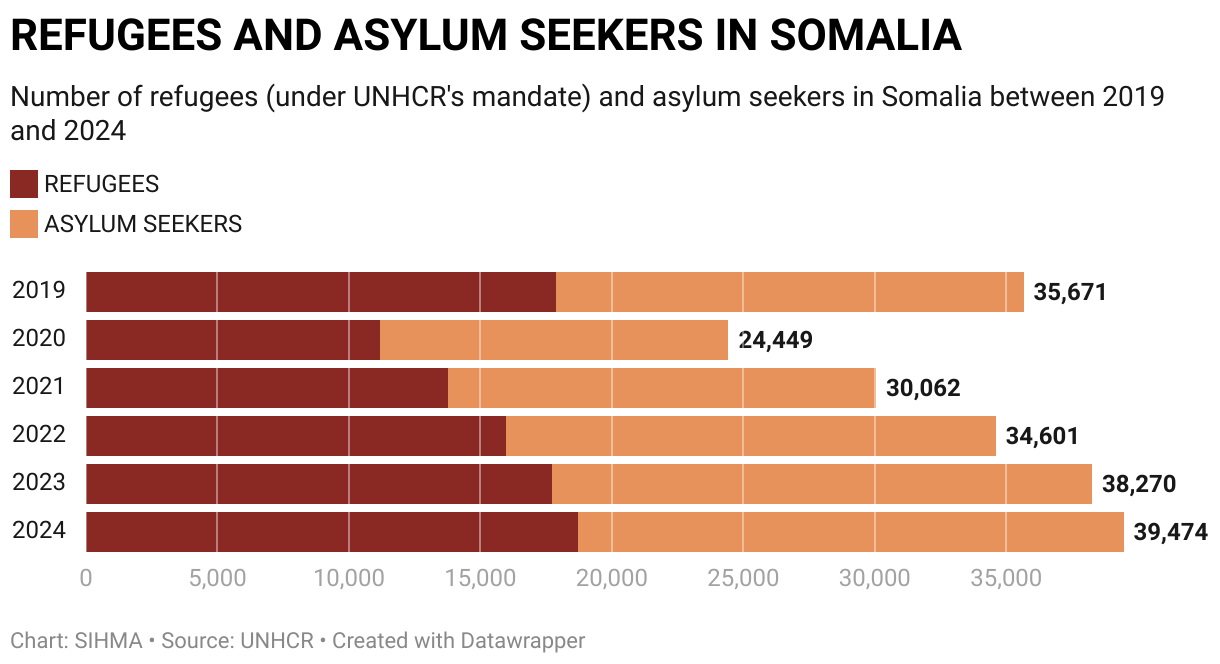 Number of refugees (under UNHCR's mandate) and asylum seekers in Somalia between 2019 and 2024