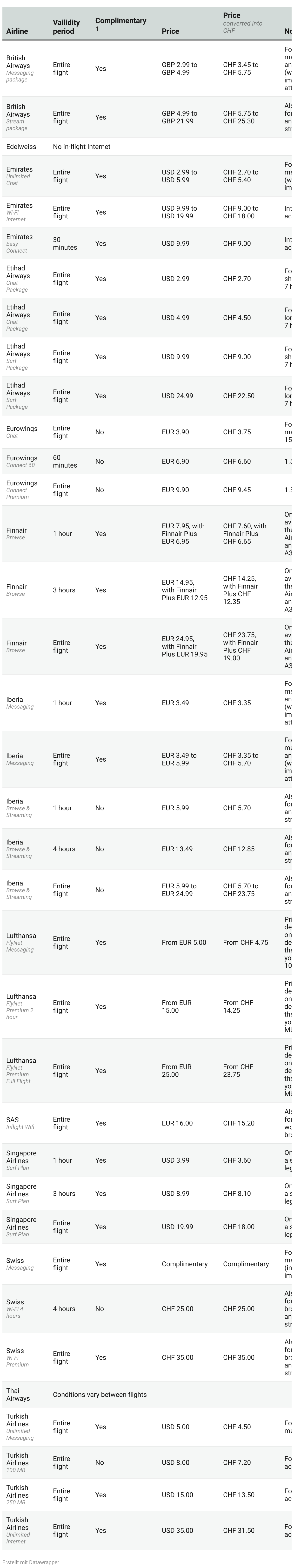 Table 3: Inflight Internet on intercontinental flights