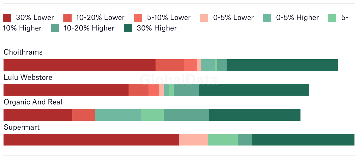 Price spread trends within online retailers in the the UAE nuts and seeds market (Q2 2023)