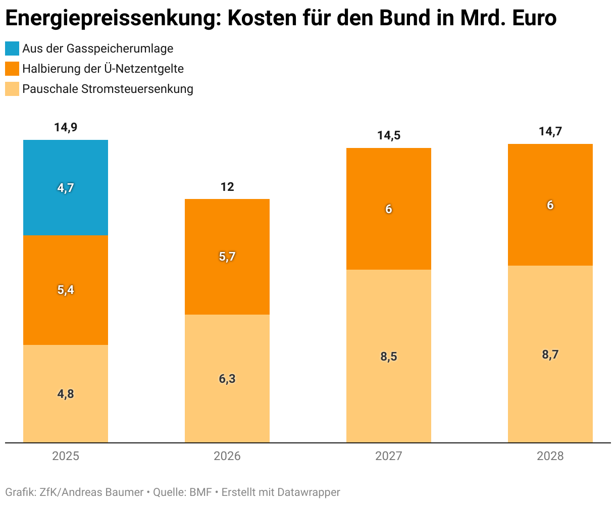 Energiepreissenkung: Kosten für den Bund in Mrd. Euro