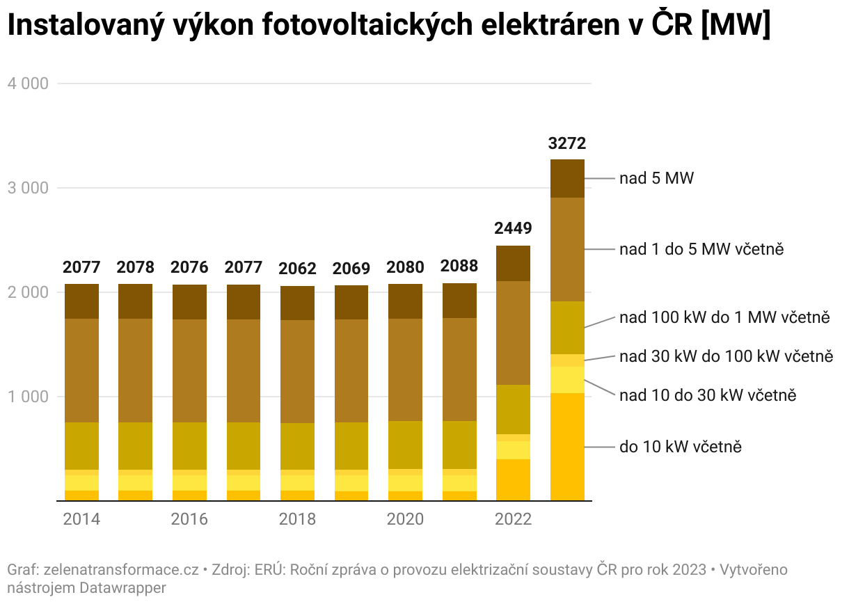 Instalovaný výkon fotovoltaických elektráren v ČR [MW]