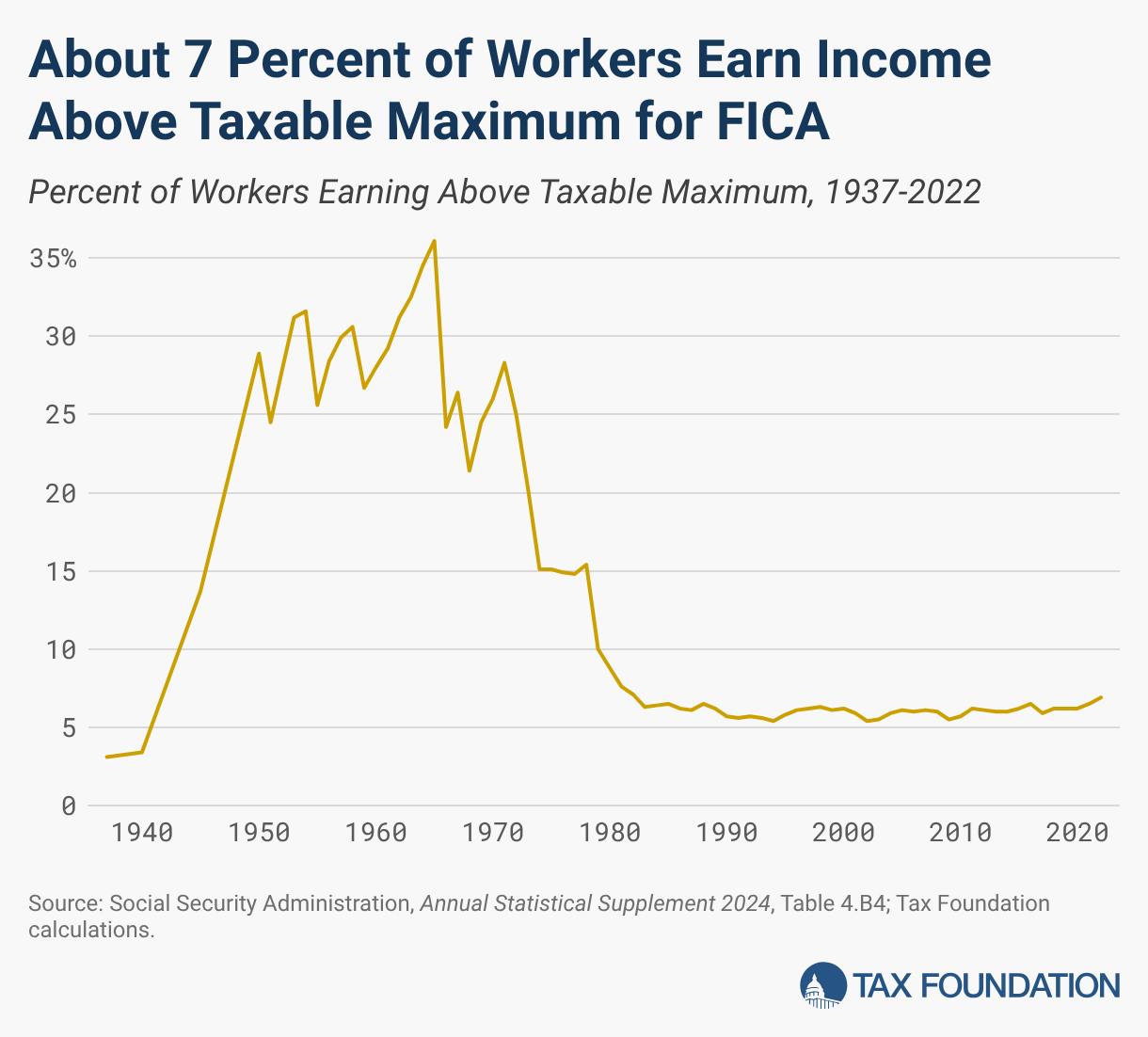 Percent of Workers Earning Above Taxable Maximum, 1937-2022
