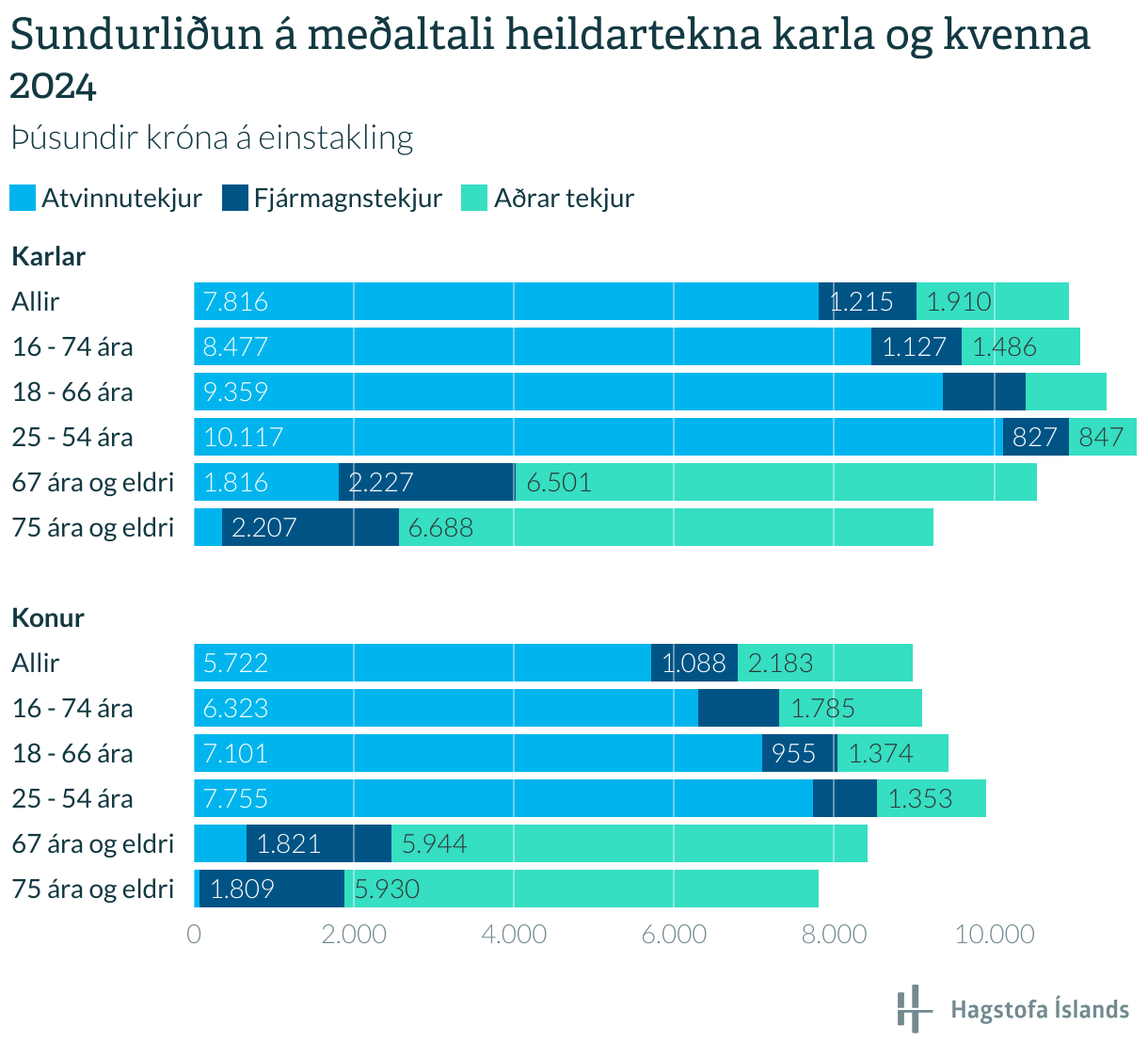 Sundurliðun á meðaltali heildartekna karla og kvenna 2024