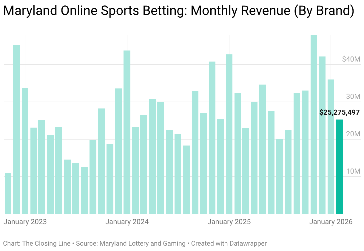 Maryland Online Sports Betting: Monthly Revenue (By Brand)