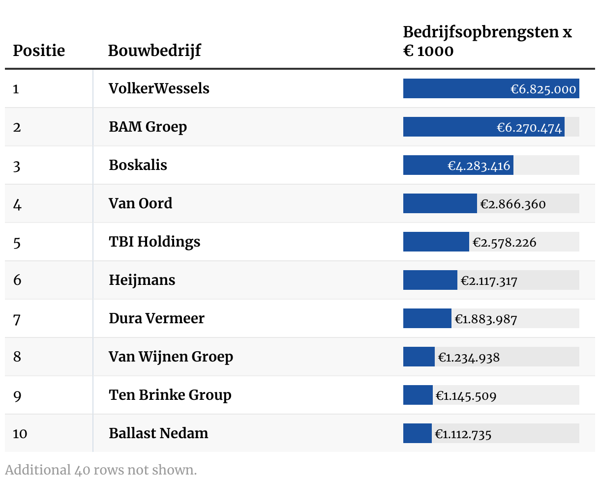 Omzet grootste bouwbedrijven Nederland (top 10)