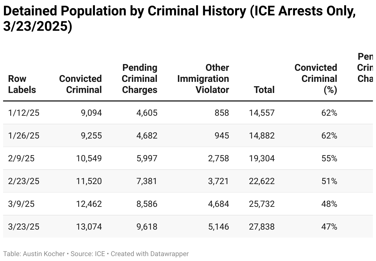 Detained Population by Criminal History (ICE Arrests Only, 3/23/2025)