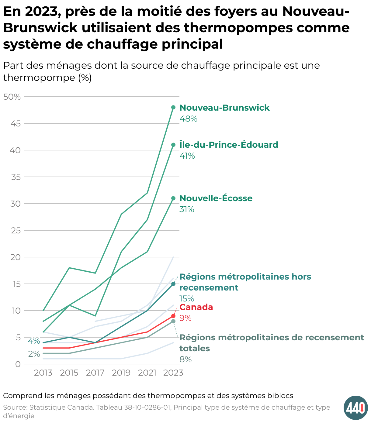 Part des ménages dont la source de chauffage principale est une thermopompe (%)