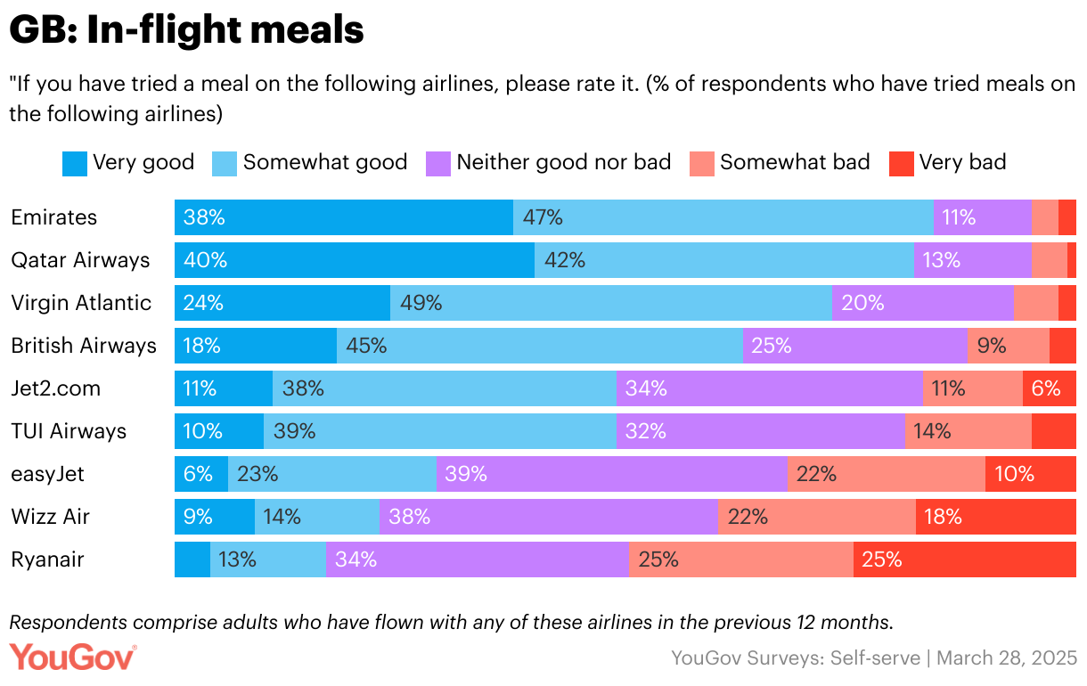"If you have tried a meal on the following airlines, please rate it. (% of respondents who have tried meals on the following airlines)