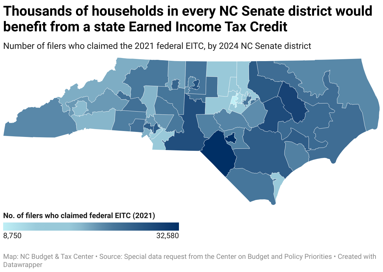 Number of filers who claimed the 2021 federal EITC, by 2024 NC Senate district