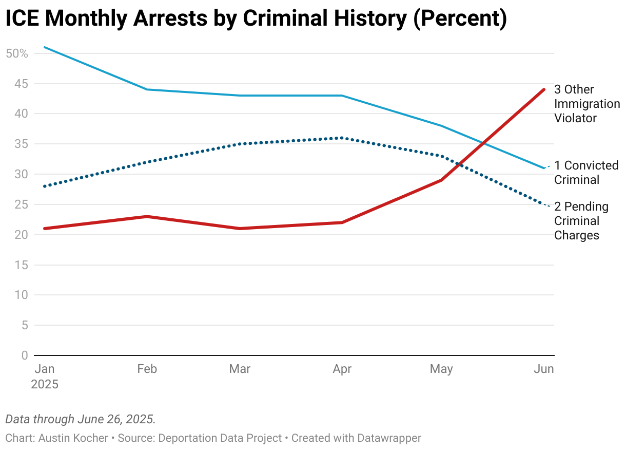 ICE Monthly Arrests by Criminal History (Percent)