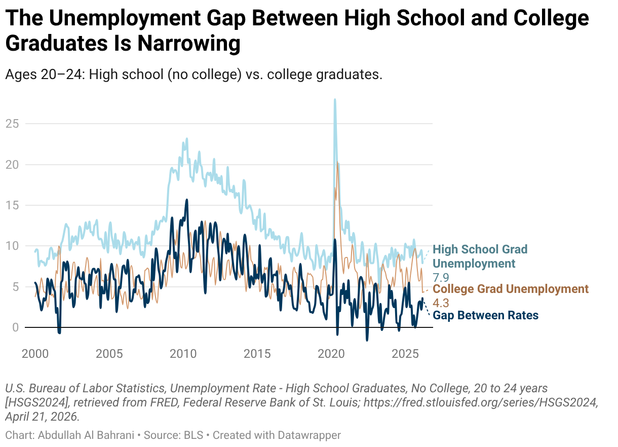 Ages 20–24: High school (no college) vs. college graduates.