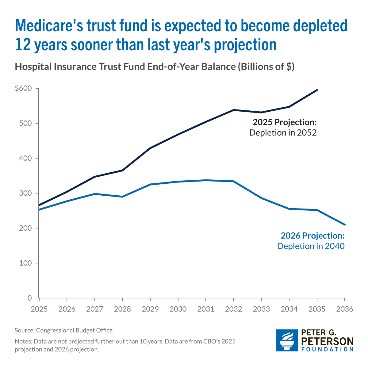Hospital Insurance Trust Fund End-of-Year Balance (Billions of $)