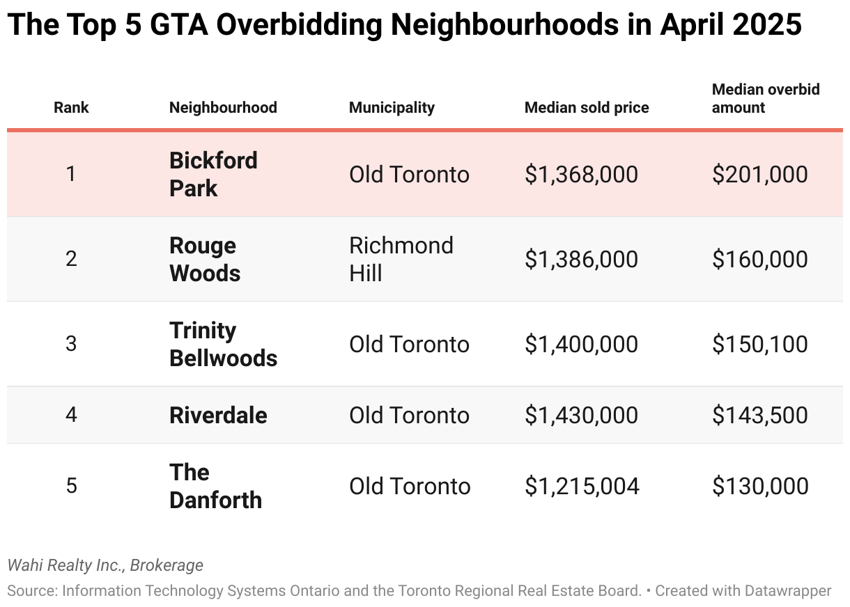 The Top 5 GTA Overbidding Neighbourhoods in April 2025