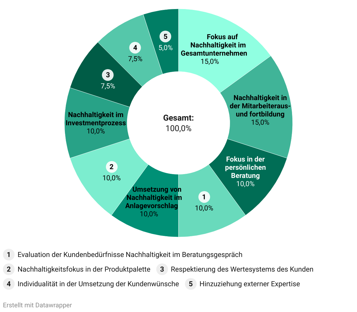 Das Donut-Diagramm zeigt die Gewichte der einzelnen Rating-Kategorien