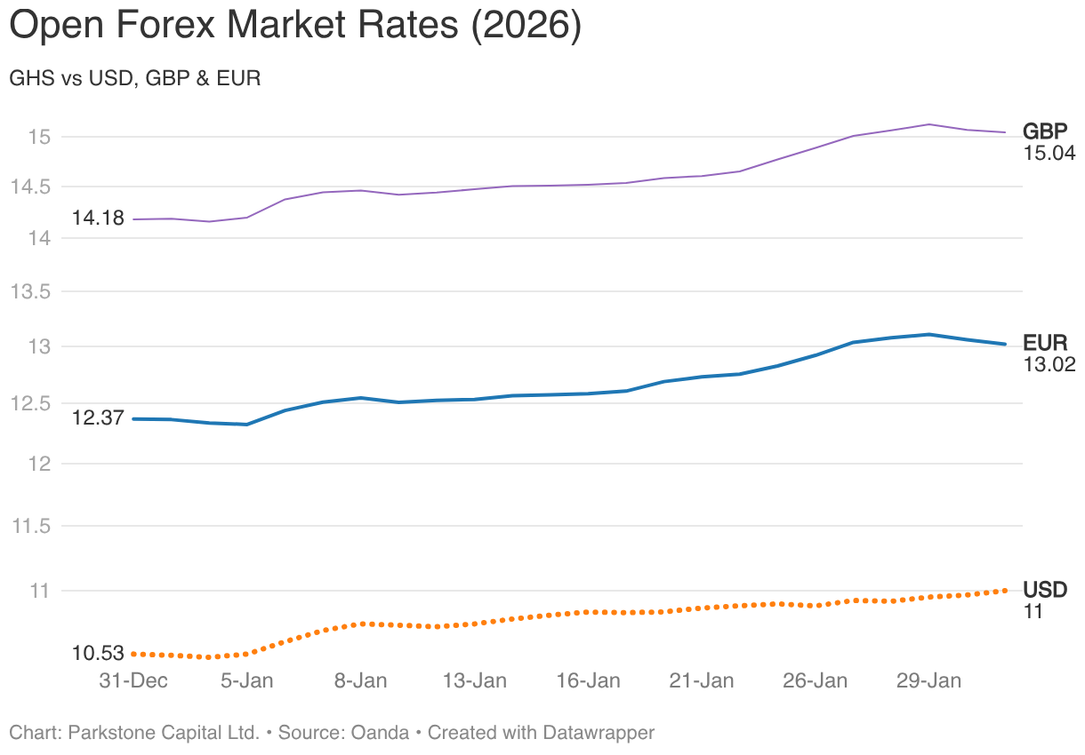GHS vs USD, GBP & EUR