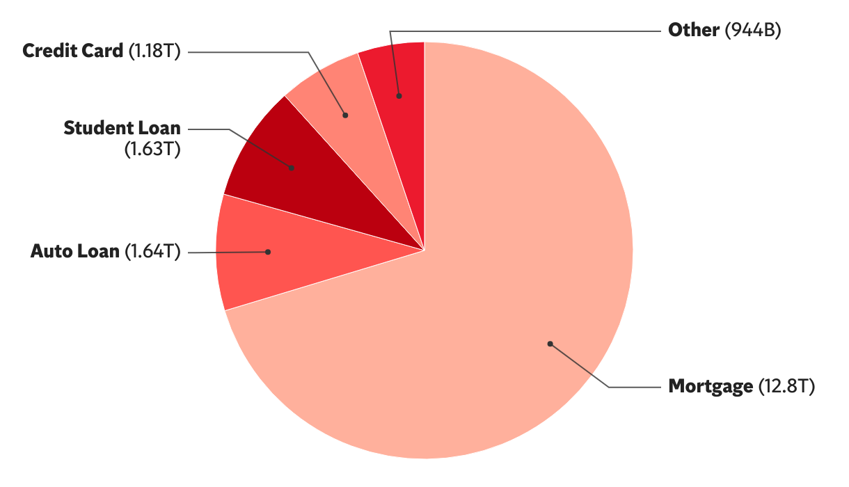 Student loans are also a major source of debt for Americans, with $1.6 trillion owed at the start of this year.