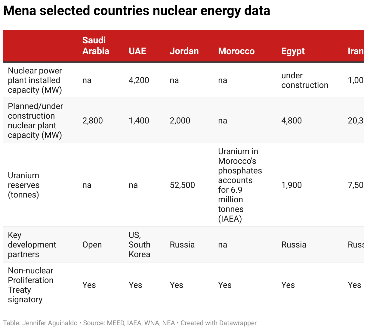 Mena selected countries nuclear energy data