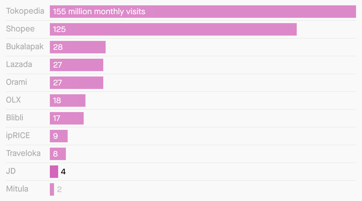 Traffic to shopping sites and apps in Indonesia in 2023