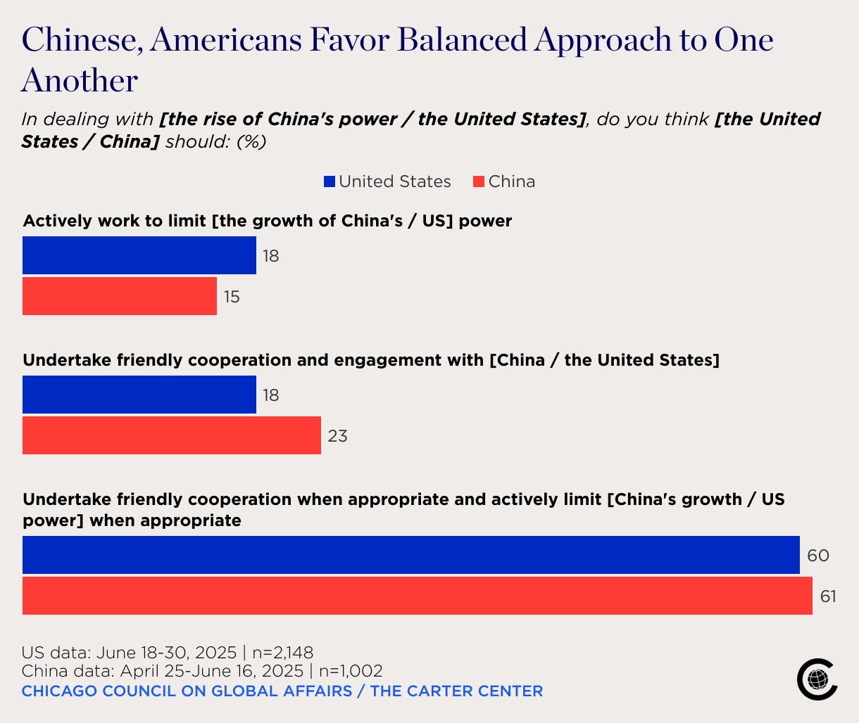 In dealing with [the rise of China's power / the United States], do you think [the United States / China] should: (%)