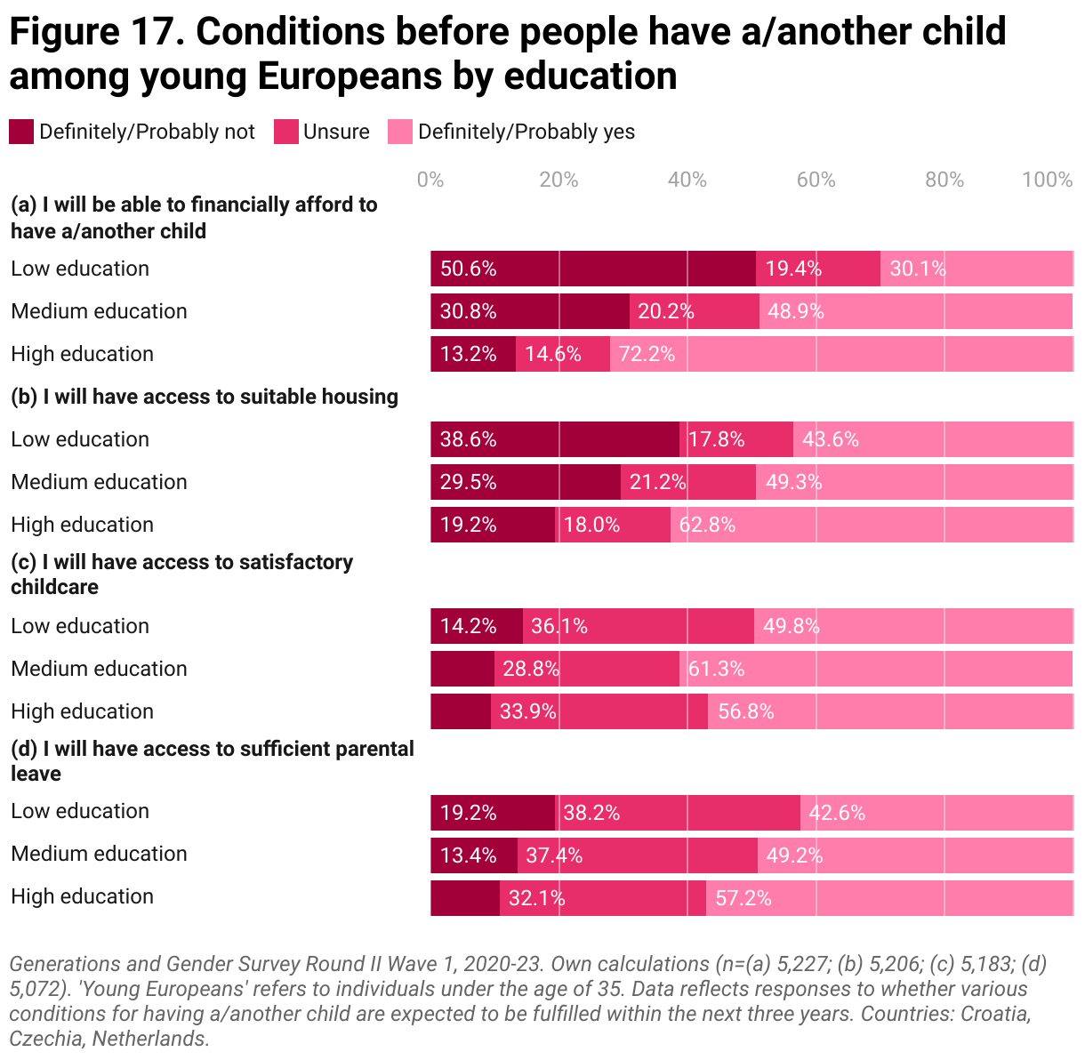 Figure 17. Conditions before people have a/another child among young Europeans by education