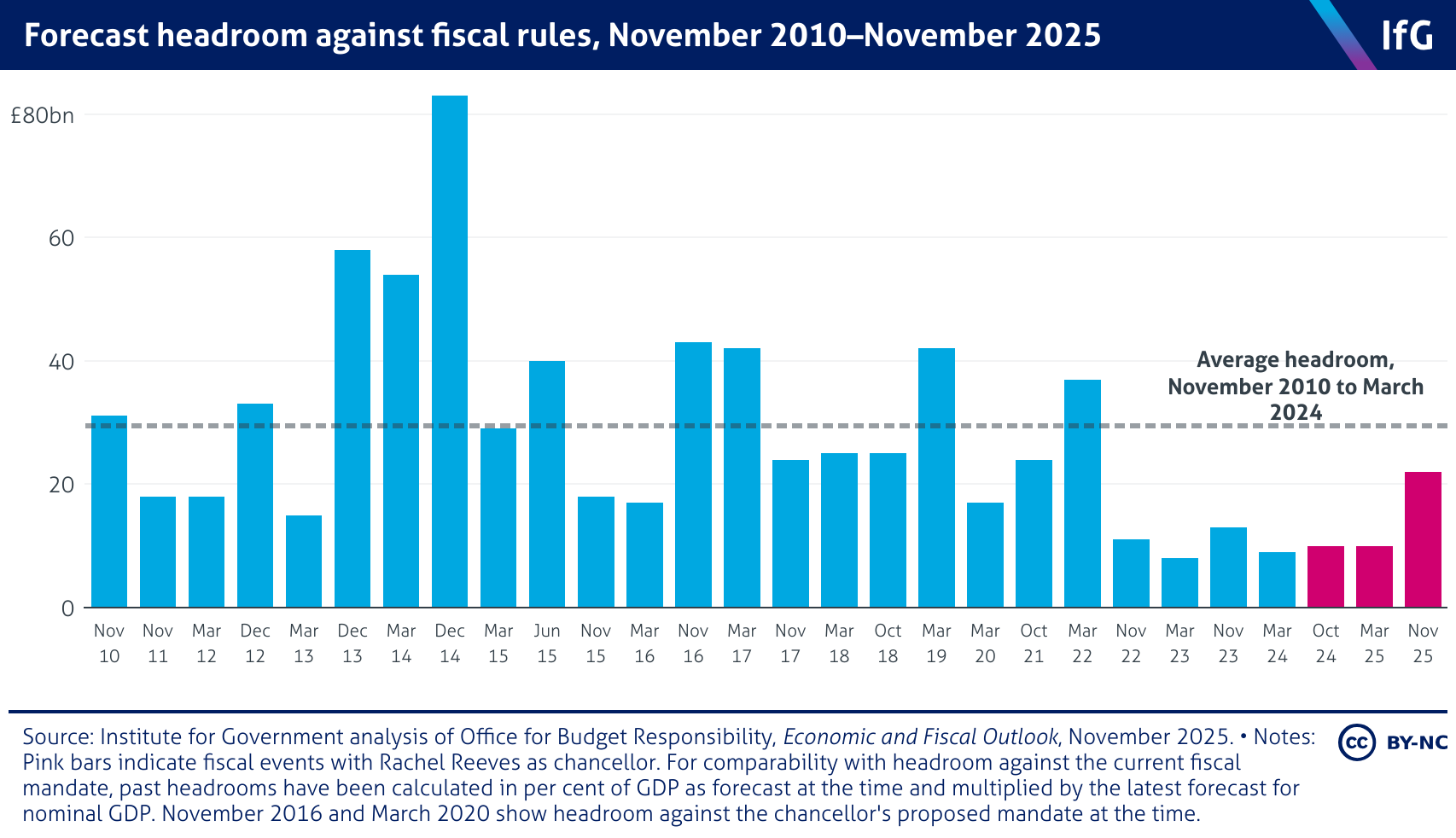 Forecast headroom against fiscal rules, November 2010–November 2025
